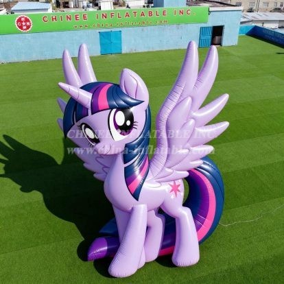 Bring the magic of Equestria to your event with this enchanting Cartoon3-127 My Little Pony Twilight Sparkle Inflatable! This stunning life-sized inflatable perfectly captures the beloved Princess Twilight Sparkle in all her Alicorn glory, featuring her signature purple coat, flowing mane with distinctive pink and blue stripes, elegant horn, and magnificent wings spread wide.