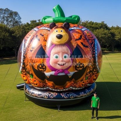 Bring unmistakable Halloween flair to your event with the Cartoon3-313 Halloween Pumpkin Inflatable Cartoons display from Chinee Inflatables Inc. This giant pumpkin-themed inflatable features vivid seasonal artwork with jack-o’-lanterns, webs, bats, and a cheerful character style inspired by Masha and The Bear, instantly creating a photogenic focal point guests will love. Designed as a decorative inflatable (not for bouncing or sliding), it is ideal for pumpkin patches, shopping malls, theme nights, school carnivals, and outdoor brand activations.