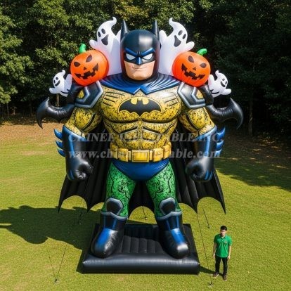 Bring heroic wow-factor to your seasonal displays with the Cartoon3-369 Batman Inflatable Cartoons by Chinee Inflatables Inc. This towering figure showcases the iconic Dark Knight in a bold armored suit, complemented by playful Halloween elements like friendly ghosts and jack-o’-lanterns. Designed as a decorative character inflatable, it is perfect for entrances, photo ops, and brand-forward setups where visual impact matters more than active play.