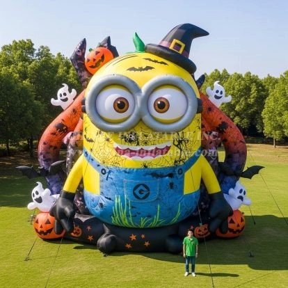 Bring irresistible fun to your spooky season with our Cartoon3-396 Minions Halloween Inflatable Cartoons. This oversized character display features a cheerful yellow helper styled for Halloween, complete with a witch hat, cobweb graphics, playful bats, and friendly ghost accents. Designed as a decoration-only inflatable, it’s perfect for creating an eye‑catching focal point at city festivals, school fairs, theme nights, shopping malls, and outdoor brand activations. Guests will flock to take photos, boosting foot traffic and social media engagement.
