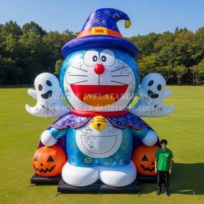 Bring instant seasonal charm to your venue with the Cartoon3-407 Doraemon Halloween Inflatable Cartoon from Chinee Inflatables Inc. This towering display features a beloved anime-style cat character dressed as a friendly wizard, complete with a pointed hat, cape with spiderweb motifs, cheerful ghost accents, and pumpkin props. Designed as a decoration-only inflatable (not for bouncing or sliding), it’s perfect for entrances, stage backdrops, photo ops, and brand activations during fall festivals, school fairs, shopping malls, and community events.