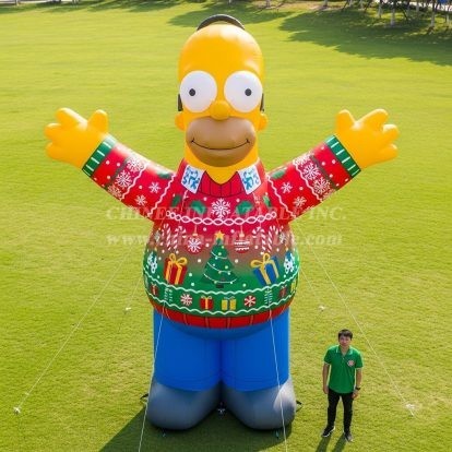 Bring instant holiday cheer with our Cartoon3-589 The Simpsons Christmas Inflatable Cartoons. This eye‑catching giant character wears a colorful festive sweater covered with snowflakes, gifts, and a Christmas tree, making it a perfect crowd‑pleaser for malls, town squares, brand activations, school fairs, and winter events. Designed as a decorative display (not for bouncing), it delivers maximum visibility and photo opportunities while setting a fun, family‑friendly atmosphere.