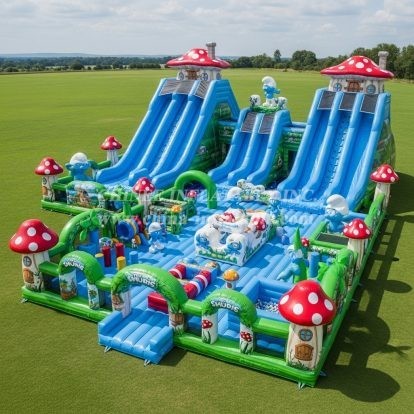 Usted está aquí: Inicio / Parque inflable / GF2-742 The Smurfs Theme Inflatable Park