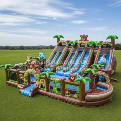 Nuestra tecnología de costura es de doble costura con costura cuádruple en el punto de tensión inferior, cuidamos todos estos detalles con barras de refuerzo adicionales para garantizar que no haya problemas cuando los clientes los usen, asegurando que los inflables tengan una vida útil de más de 3 años.