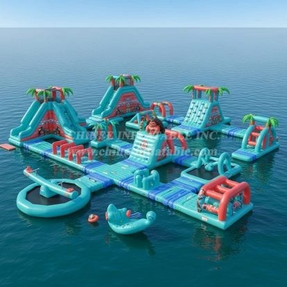 Chinee utiliza material personalizado anti UV y resistente al calor, lo que aumenta la vida útil del parque acuático flotante en un 30%-50% más que el material normal que la mayoría de los proveedores han estado utilizando, especialmente en áreas con fuerte exposición a los rayos UV y altas temperaturas.