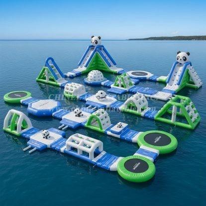 Chinee utiliza material personalizado anti UV y resistente al calor, lo que aumenta la vida útil del parque acuático flotante en un 30%-50% más que el material normal que la mayoría de los proveedores han estado utilizando, especialmente en áreas con fuerte exposición a los rayos UV y altas temperaturas.