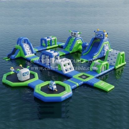 Chinee utiliza material personalizado anti UV y resistente al calor, lo que aumenta la vida útil del parque acuático flotante en un 30%-50% más que el material normal que la mayoría de los proveedores han estado utilizando, especialmente en áreas con fuerte exposición a los rayos UV y altas temperaturas.