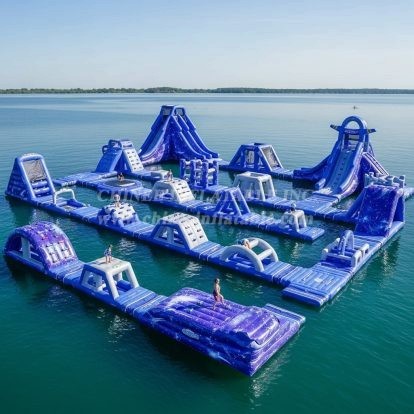 Chinee utiliza material personalizado anti UV y resistente al calor, lo que aumenta la vida útil del parque acuático flotante en un 30%-50% más que el material normal que la mayoría de los proveedores han estado utilizando, especialmente en áreas con fuerte exposición a los rayos UV y altas temperaturas.