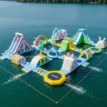 Bring splash-filled excitement to your waterfront with the S309 Ocean Theme Water Park from Chinee Inflatables. This modular floating park blends tall slides, climbing walls, balance beams, and trampolines into a colorful, family‑friendly course that keeps guests circulating and engaged for hours. Ocean accents like a dolphin slide, rainbow arches, and a playful rabbit entry add instant visual appeal for resorts, camps, and rental operators.