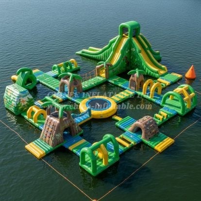 Transform your lake or seaside venue with the S310 Jungle Theme Water Park from Chinee Inflatables Inc., China’s leading inflatable manufacturer since 1998. This expansive floating course blends vibrant jungle graphics, palm tree arches, rope bridges, climbing elements, and multiple slides to create a thrilling, family‑friendly attraction. Designed for high throughput and nonstop fun, it features balance beams, crawl tunnels, jump pads, and rest areas that let guests choose easy or challenging routes at their own pace.