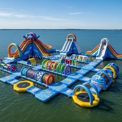 Make a splash with the S358 Ocean Theme Water Park from Chinee Inflatables. This expansive floating adventure brings the excitement of slides, trampolines, balance paths, tunnels, and climbing walls together in a vibrant ocean-inspired layout. Designed for lakes, calm coastal bays, and resort marinas, it delivers a thrilling mix of speed, agility, and teamwork challenges for guests of all ages.