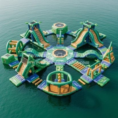 Chinee utiliza material personalizado anti UV y resistente al calor, lo que aumenta la vida útil del parque acuático flotante en un 30%-50% más que el material normal que la mayoría de los proveedores han estado utilizando, especialmente en áreas con fuerte exposición a los rayos UV y altas temperaturas.