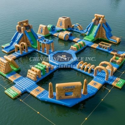 Chinee utiliza material personalizado anti UV y resistente al calor, lo que aumenta la vida útil del parque acuático flotante en un 30%-50% más que el material normal que la mayoría de los proveedores han estado utilizando, especialmente en áreas con fuerte exposición a los rayos UV y altas temperaturas.