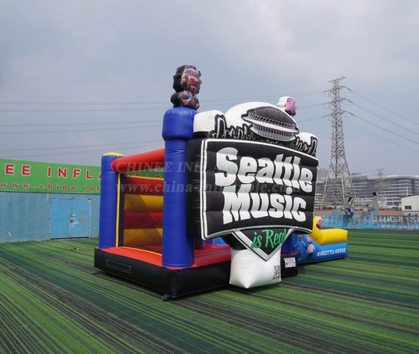 Welcome to a masterclass in brand activation with this fully custom bounce house and slide combo, designed and manufactured by Chinee Inflatables. This project was a unique creation for the “Seattle Music is Real” and “MARIOTTO-VERSE” brands, turning their distinct digital art and branding into a massive, interactive experience.