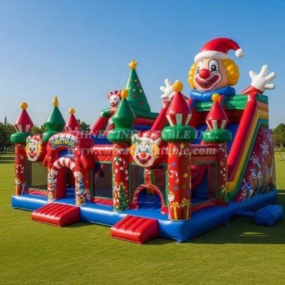 Bring holiday magic to your events with the T2-8615 Christmas Theme Inflatable Combo from Chinee Inflatables. This vibrant unit blends a festive bounce house with an attached slide, wrapped in cheerful seasonal graphics—towering gift-topped turrets, candy canes, a decorated tree, and friendly clown characters in Santa hats. It’s the perfect centerpiece for school fairs, city light-ups, Christmas markets, and rental inventory looking to sparkle in peak season.