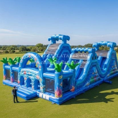 Nuestra tecnología de costura es de doble costura con costura cuádruple en el punto de tensión inferior, cuidamos todos estos detalles con barras de refuerzo adicionales para garantizar que no haya problemas cuando los clientes los usen, asegurando que los inflables tengan una vida útil de más de 3 años.