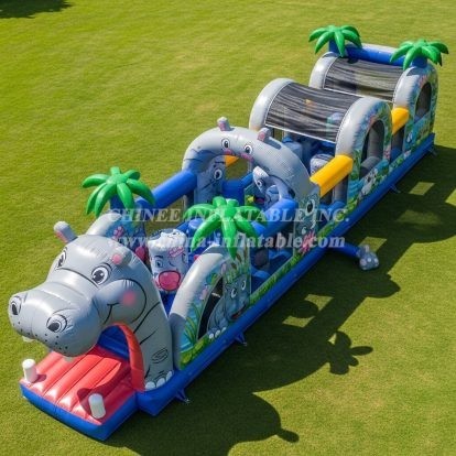 T7-3858 Hippo Theme Inflatable Obstacle Course