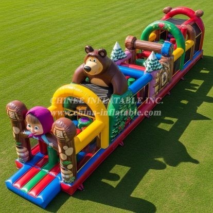 T7-4235 Masha and the Bear Theme Inflatable Obstacle Course