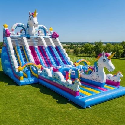 Experience magical fun with the T8-8804 Unicorn Inflatable Slide from Chinee Inflatables! Featuring vibrant rainbow accents, whimsical unicorn designs, and star-themed details, this giant slide offers endless adventure for kids. Crafted with top-quality materials for durability and safety, it’s perfect for parties, festivals, and outdoor events. Let children slide, play, and imagine in a colorful fantasy world with this enchanting inflatable attraction.