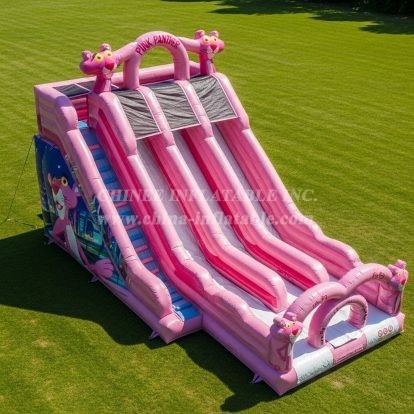 This vibrant Pink Inflatable Slide features triple lanes for double the sliding fun and colorful themed decoration. Perfect for adding a nostalgic and playful touch any event, it guarantees hours of excitement for kids who love this classic cartoon character. Crafted with durable materials, it ensures safety and lasting enjoyment at parties or outdoor gatherings.