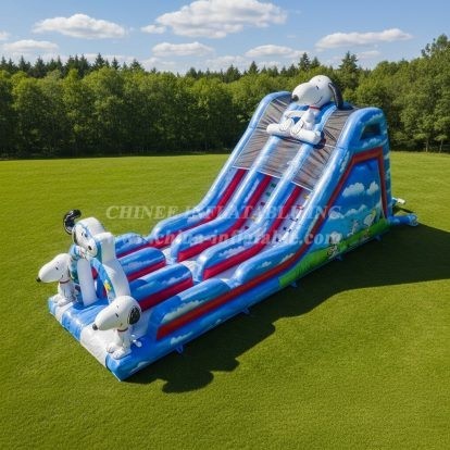 Bring joyful summer fun with this Snoopy Inflatable Water Slide featuring vibrant colors and friendly character designs. Perfect for outdoor events, kids can climb and slide down multiple lanes surrounded by playful Snoopy art. Durable and safe this inflatable water slide promises endless entertainment and memorable moments for kids and families alike.