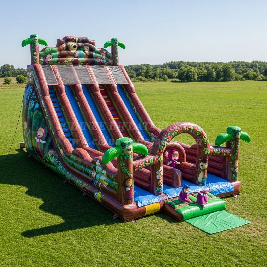 This vibrant Masha and The Bear inflatable slide features exciting double lanes for endless fun. Designed with colorful jungle-themed decorations and beloved characters, it brings adventure and laughter to any outdoor event. Durable and safe, it’s perfect for children’s parties looking to add a captivating and playful atmosphere.