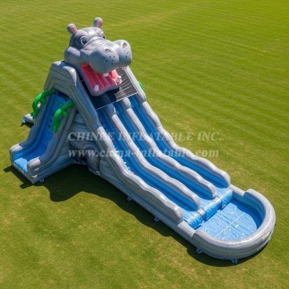 Make a splash with this giant Hippo Theme Inflatable Water Slide — a triple-lane, high-capacity attraction with an eye-catching hippo head and playful croc accents. Rugged PVC construction, non-slip climb, and a shallow landing pool deliver safe thrills for parks, events, and resorts. Fast setup and easy maintenance make it a standout centerpiece for summer fun and family entertainment.